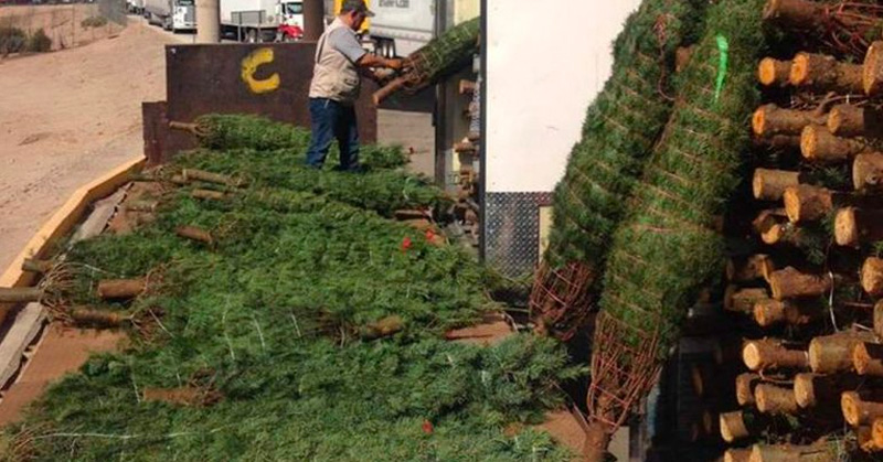 Los árboles de navidad quedaron resguardados en los patios de la aduana de Nuevo Laredo.
