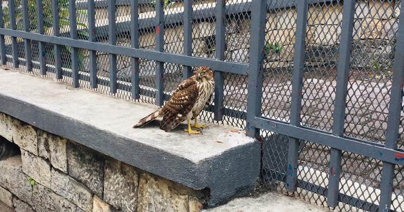 Inspectores de la dependencia informaron que fueron avisados vía telefónica por comerciantes de la zona, ya que el ave se encontraba cazando pichones en la zona y pudo haberse golpeado, lo que le impidió continuar su vuelo.