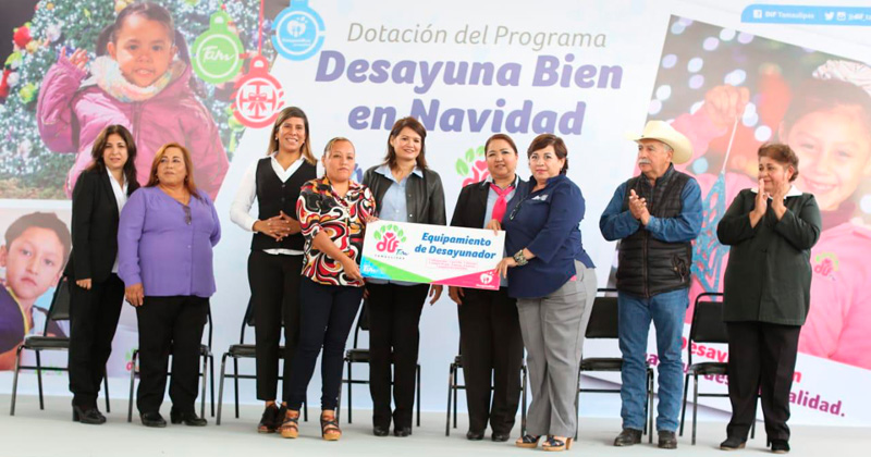 Hidalgo, Tamaulipas.- El Sistema para el Desarrollo Integral de la Familia de Tamaulipas, que preside Mariana Gómez de García Cabeza de Vaca, dio inicio a la entrega de la dotación alimentaria “Desayuna Bien en Navidad”, con el propósito de que las y los niños beneficiados con el programa de desayunos escolares continúen consumiendo alimentos nutritivos y calientes en el periodo vacacional.