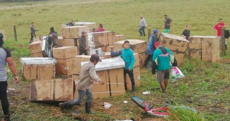 Vuelca tráiler con electrodomésticos y arman rapiña