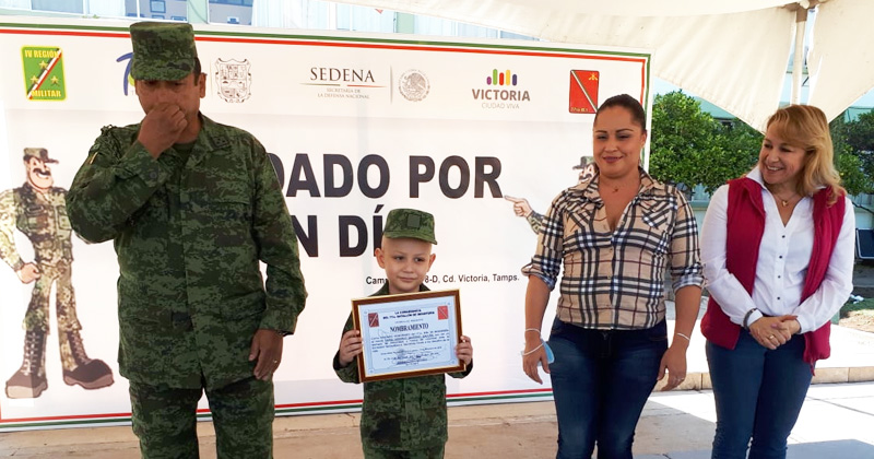 CIUDAD VICTORIA, Tamaulipas.- David Gerardo Martínez Galván, ayer hizo realidad su sueño; fue soldado por un día, donde se reconoció su valor al luchar contra la leucemia y por su amor a la patria, por su deseo de pertenecer al Ejército.