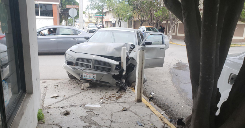 Joven atraviesa su lujoso Charger al paso de un vehículo oficial; ocho personas salieron heridas y genera daños por 150 mil pesos