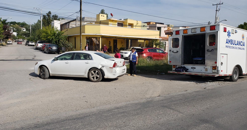 Conductor hace alto total sobre la vieja carretera a Mante para ingresar a un fraccionamiento y es embestido por otro vehículo por detrás; dos menores, uno de meses y otro de 8 años, resultaron con golpes
