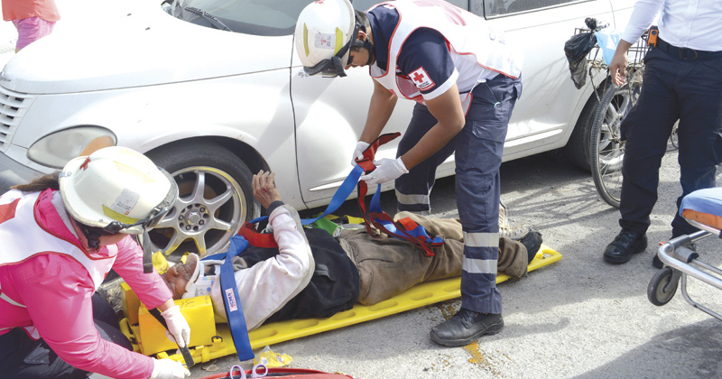 Con una seria fractura expuesta y golpes en el cuerpo resultó un vendedor de periódicos tras ser derribado por una unidad que iba rumbo a Monterrey… y el responsable ni por enterado se dio