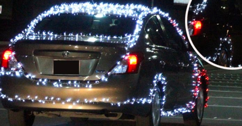 Un hombre sorprendió a los automovilistas al dar un toque navideño a su auto.