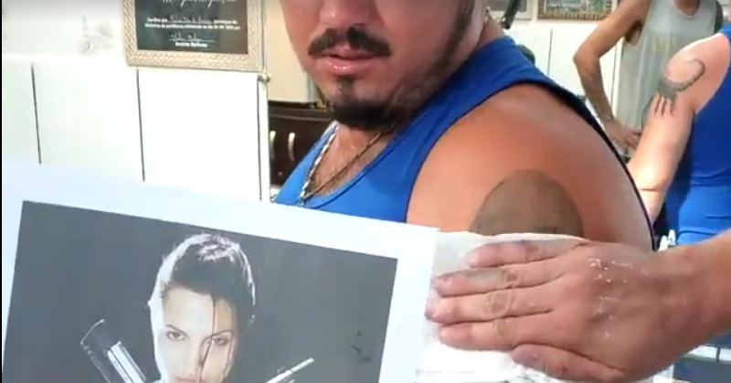 Este hombre quiso llevar a Lara Croft en el brazo, pero no quedó como lo planeó