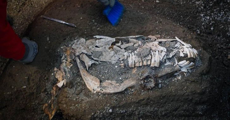 Arqueólogos descubren caballo con arnés cerca de Pompeya
