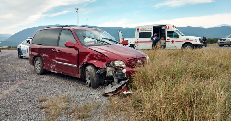 Familia de riobravenses provenientes de San Luis Potosí se estrellan contra un vetusto auto que se les atravesó en el entronque de las carreteras vieja al Mante y Rumbo Nuevo; siete fueron hospitalizados