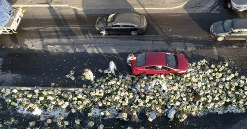 A través de redes sociales se dio a conocer el robo de cerveza que cayó de un camión en Nuevo León
