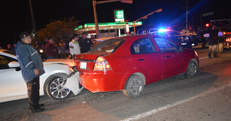 Cuatro coches dañados arrojó como resultado la imprudencia de un conductor el cual se presume que manejaba bajo los influjos del alcohol y no alcanzó a frenar al llegar a un semáforo