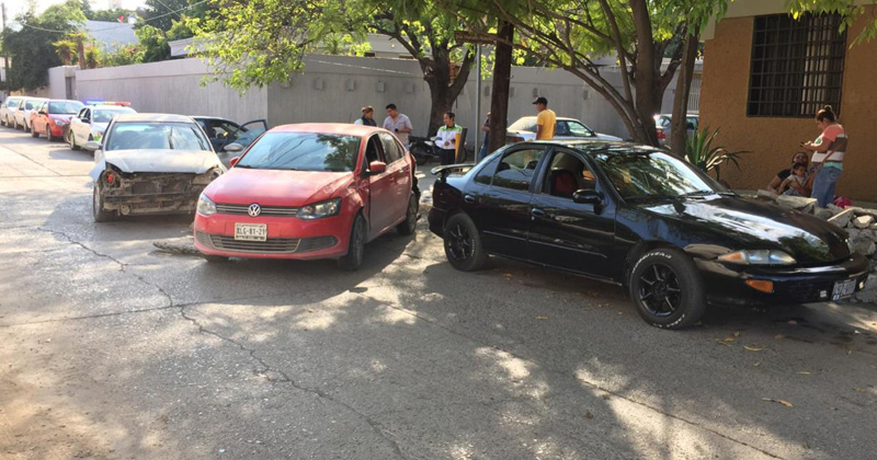 Olvida hacer alto en el 15 Abasolo y termina pegándole a dos autos