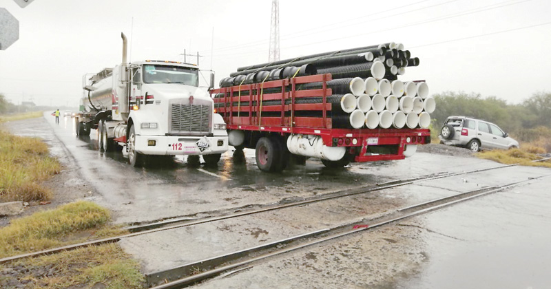 Camioneta cargada con tubos de plástico le apuesta a su suerte e intenta pasar en medio de un tráiler y una troca cerrada; termina chocando a ambos y lesionando a un matrimonio de adultos mayores