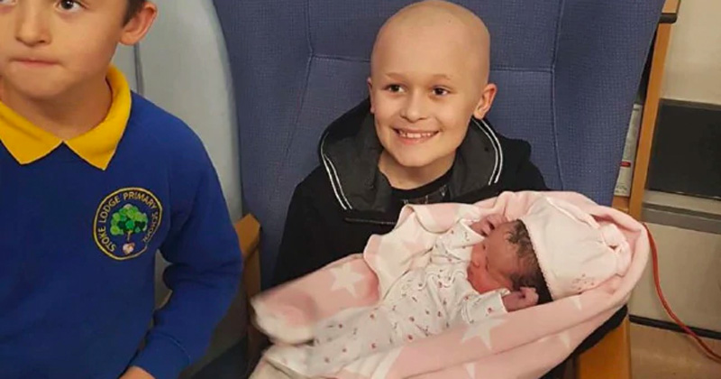 Niño con cáncer terminal muere después de conocer y cargar a su hermanita recién nacida