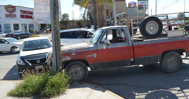 Camioneta de modelo antiguo conducida por un adulto mayor sufre una avería y se va de frente en el cruce de Eje Vial y avenida Las Américas provocando daños valuados en 50 mil pesos