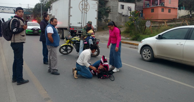 Por hacer una maniobra rápida para evitar arrollar al menor, pierde el control y va a dar al piso junto con su esposa y un menor de edad; la señora tuvo que ser hospitalizada
