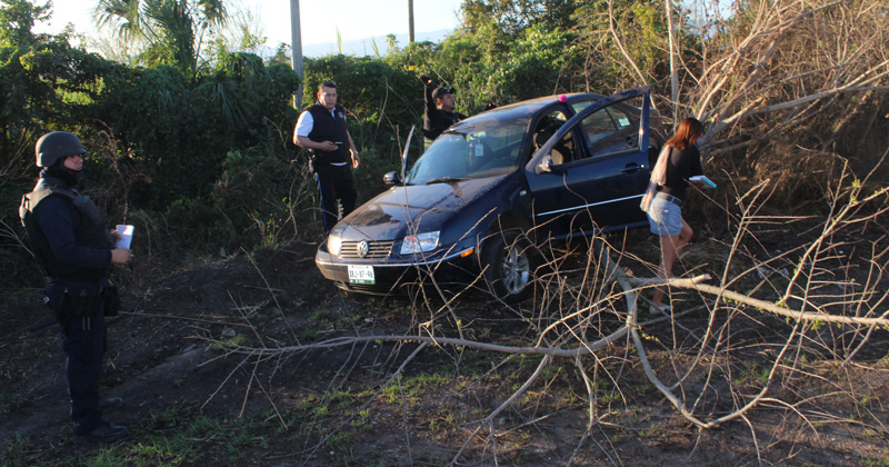 Presuntamente un camion invade el carril contrario y ocasiona que la conductora de un auto tipo Jetta perdiera el control y se salga de la carretera