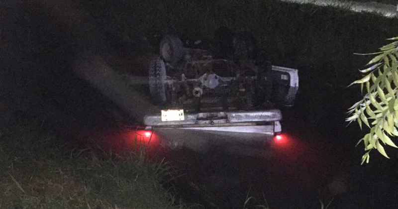 Conductor de una camioneta manejaba en aparente estado de ebriedad y vuelca su unidad cayendo a un canal