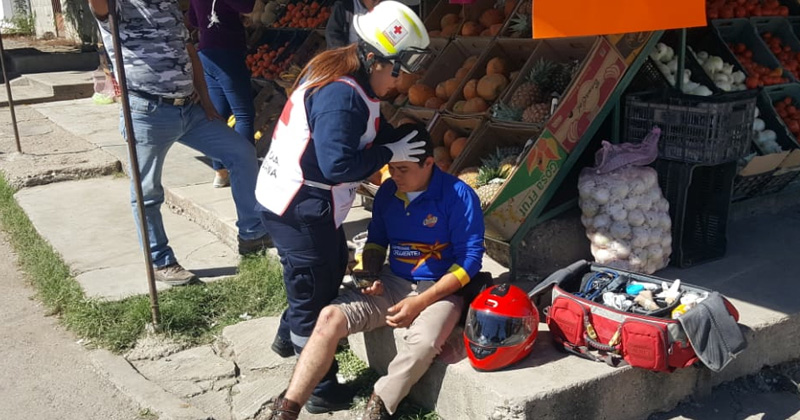 Motociclista muerde el polvo en el 27 Matamoros luego de impactarse en el costado de una unidad que se le atravesó al no hacer alto