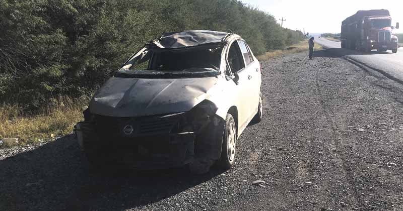 Jóvenes salen vivos después de volcar su auto y dejarlo “pa’l kilo” en la carretera a Matamoros cerca de la brecha a San Carlos