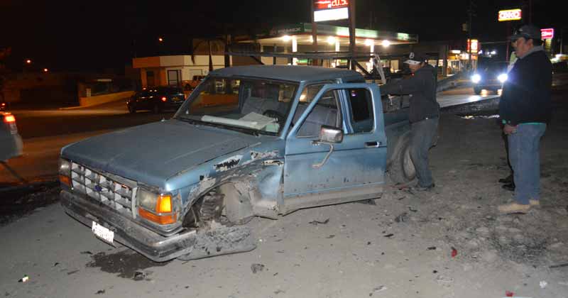 Joven conductor se impacta contra camioneta que salió sin precaución de la gasolinera del Eje Vial y Zacatecas y cruza el enorme camellón para quedar en sentido contrario al flujo vehicular