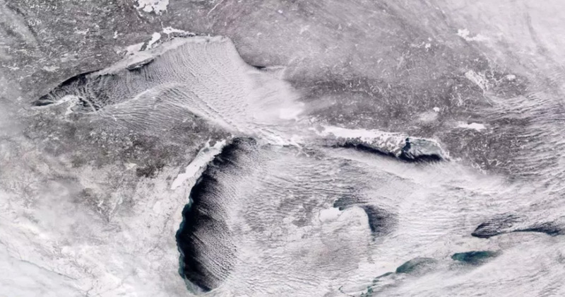 Así se ve desde el espacio el frío extremo sobre los Grandes Lagos