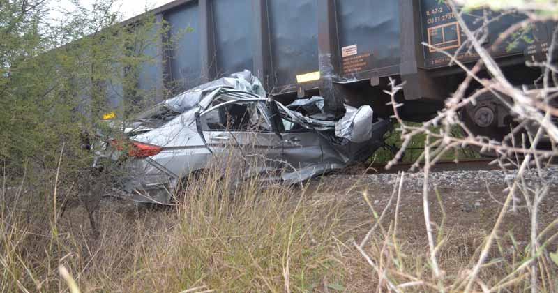 Violenta muerte tuvieron dos mujeres al ser alcanzadas por el tren en el kilómetro 49 de la carretera a Monterrey; fueron arrastradas 200 metros dentro de su auto hecho chatarra