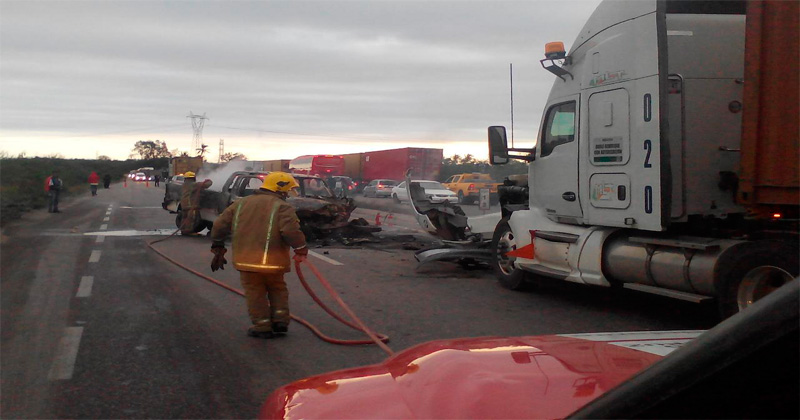 Chofer se salva de morir calcinado. Camioneta Choca y se Incendia.
