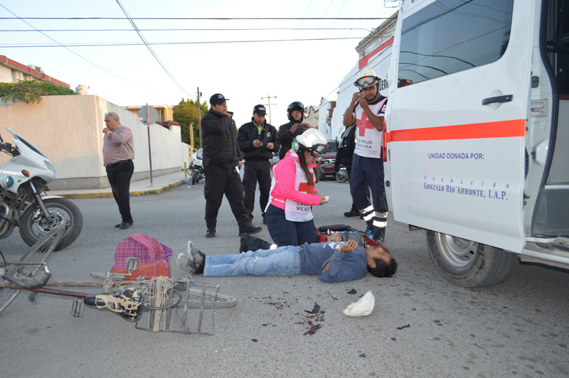 Dama al volante se distrae y no hace alto en el cruce del 16 Guerrero y se lleva de corbata a un ciclista que debido a sus heridas tuvo que ser hospitalizado