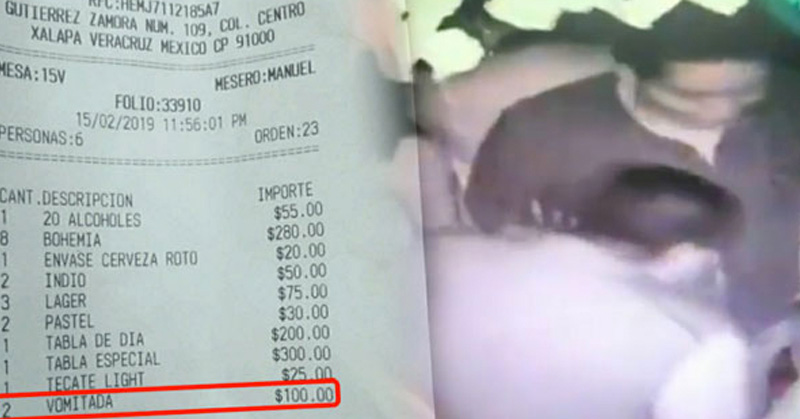 El bar publicó el vídeo donde se observa al cliente devolver luego de varias copas dentro del lugar