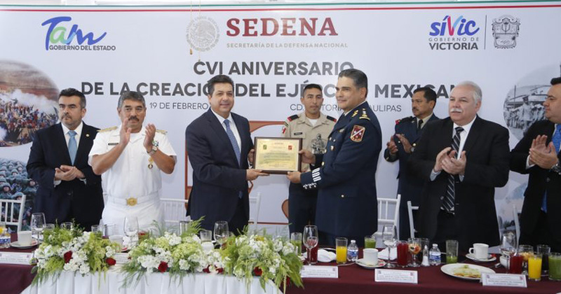 CIUDAD VICTORIA, TAMAULIPAS.- El Gobernador Francisco García Cabeza de Vaca junto al Comandante de la 8/a Zona Militar, General de Brigada D.E.M. Carlos Arturo Pancardo Escudero, presidió esta mañana la conmemoración del 106 Aniversario de la Creación del Ejército Mexicano, en instalaciones del Campo Militar del 77 ° Batallón de Infantería, en esta ciudad capital. […]
