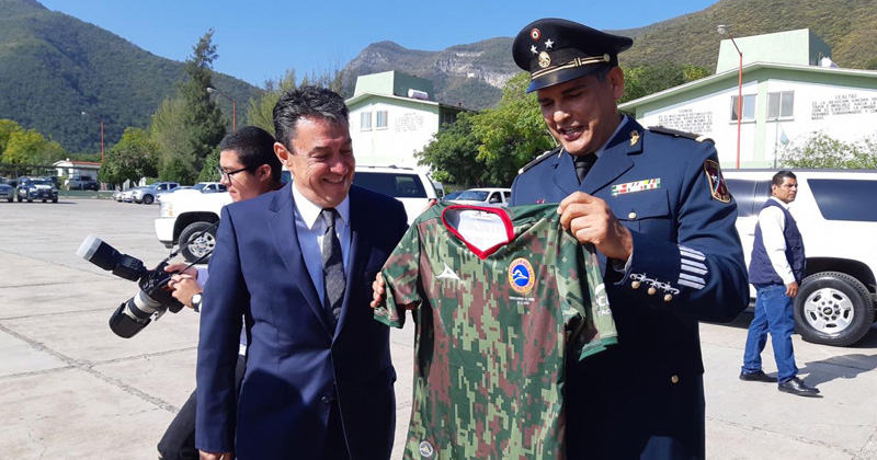 El presidente del equipo, Rafael Flores fue quien hizo entrega del jersey a un miembro de la infantería tamaulipeca.