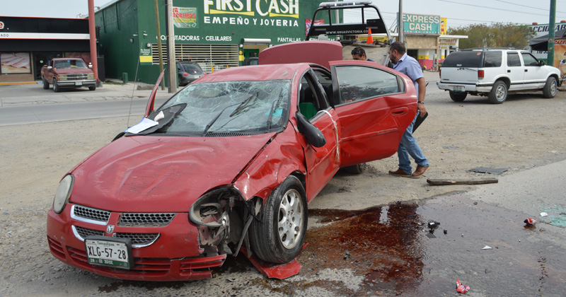 Múltiples golpes sufrió una mujer al volante luego de que una camioneta se le atravesara; tras el impacto su auto volcó en pleno Eje Vial, el responsable del percance huyó.