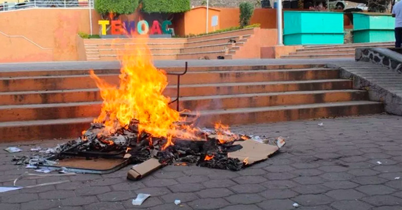 Queman boletas de consulta para termoeléctrica en Temoac, Morelos