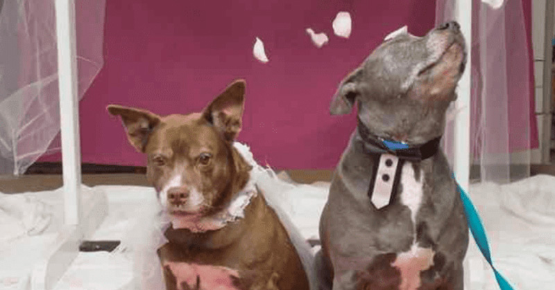La pareja de perros ancianos recién celebraron su boda y esperan quién los lleve juntos a casa
