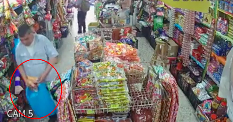 Sin embargo, en un segundo vídeo un sujeto logra robarse por lo menos 12 paquetes de dulces.