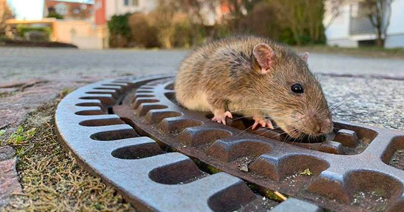 Rata con sobrepeso es rescatada; quedó atorada en alcantarilla