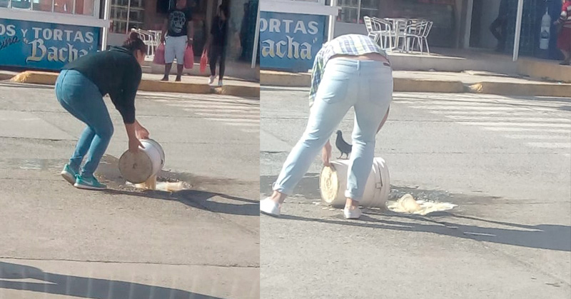 Sin el menor recato y a plena luz del día, empleados de comercios arrojan la grasa a los registros.