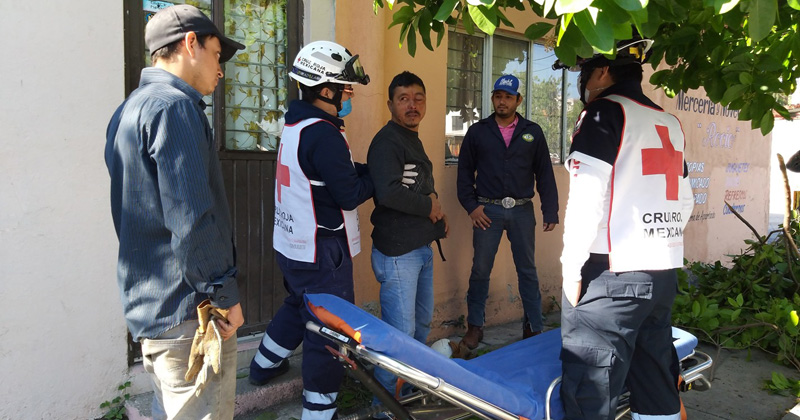 Jardinero se lleva tremendo costalazo al estar podando un árbol, sus heridas ameritaron una rápida visita al hospital.