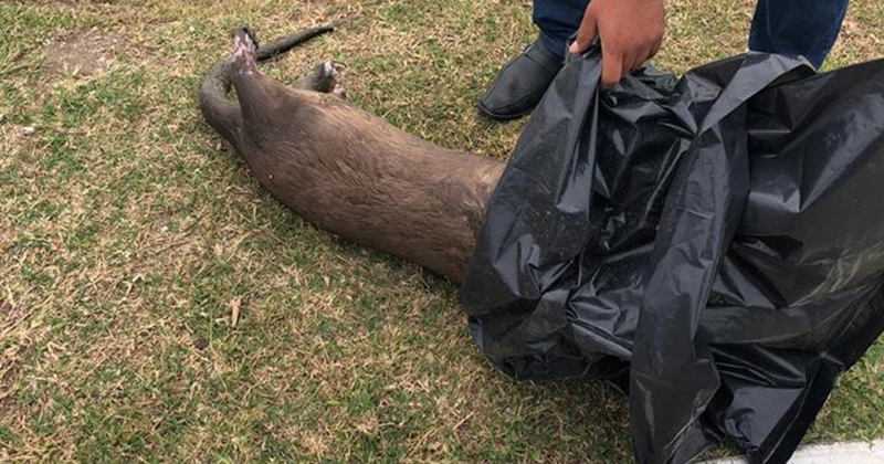 Nutria muerta flota en laguna