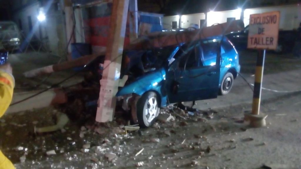 Choca con poste y derriba otro