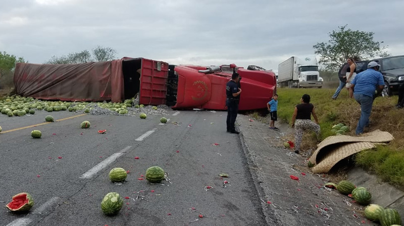 Trailero es vencido por el sueño y termina volcando su unidad en el libramiento de San Fernando arrojando pérdidas que alcanzan los 400 mil pesos: tres horas estuvo cerrado ese tramo