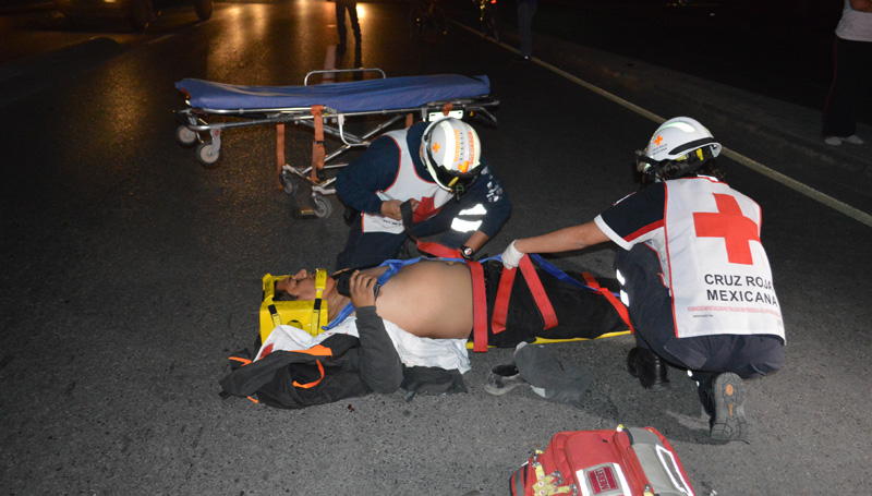 El empleado resulta con golpes de consideración al ser embestido en el kilómetro 5 carretera a Monterrey por una camioneta cuyo conductor tras el accidente se dio a la fuga