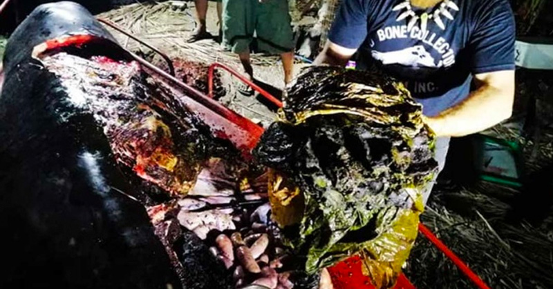 Se trata de la mayor cantidad de plástico encontrada en una necropsia realizada en ese centro a una ballena, que ingieren erróneamente el plástico que hay en el mar pensando que se trata de comida, explicaron.