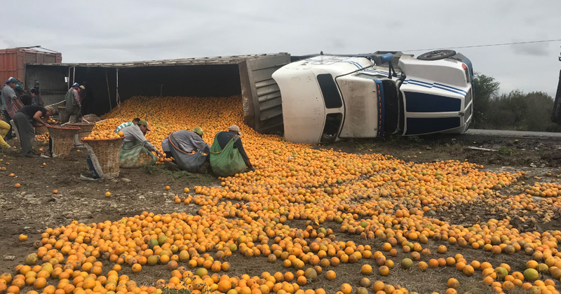 Por sacarle la vuelta a otro vehículo que le invadió carril terminó ‘costaleando’ su tráiler, por extraño que parezca esta vez no hubo rapiña y la carga se rescató.