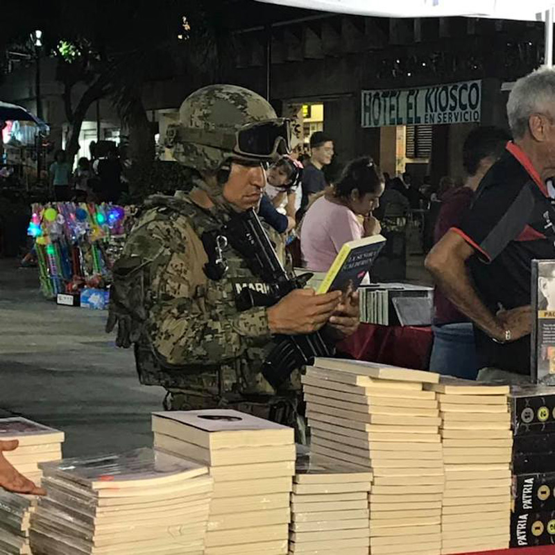“Un lector en cada hijo te dio”, escribió la Brigada para Leer en Libertad acompañado de la imagen del soldado sosteniendo un libro en el Zócalo de Acapulco