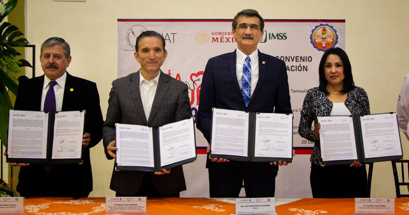 Dijo que a través del convenio se amplía y fortalece la colaboración con el IMSS, por lo que se reforzarán las áreas de atención a la salud de los trabajadores y de los estudiantes de las diferentes facultades, unidades académicas y escuelas, de la UAT.
