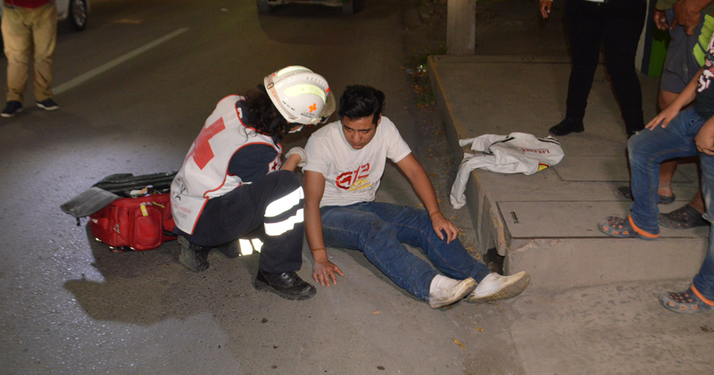 Joven pierde el control de su motocicleta y derrapa en el 22 Allende y Bravo justo frente al Museo Regional de Historia de Tamaulipas: sufre diversas heridas por lo que tuvo que ser hospitalizado.