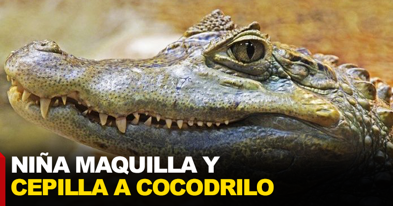 Niña maquilla y le cepilla los dientes a un cocodrilo (video)