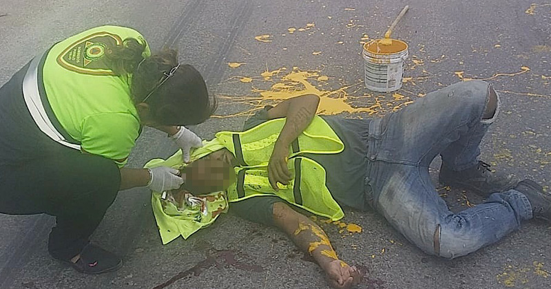 Trabajadores usaban lazos de mecate para realizar mediciones sobre la vía, y en ese instante, una unidad de la empresa gasera «Astro Gas», jaló la soga que se enredó en uno de sus neumáticos.