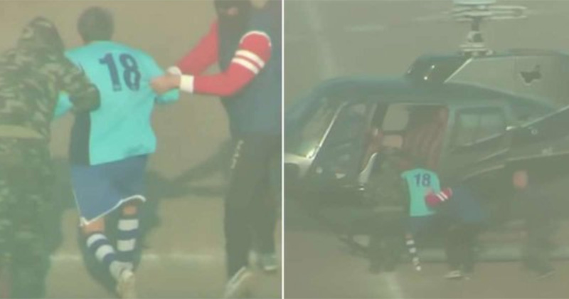 Helicóptero aterriza en medio de un estadio y «secuestra» a futbolista